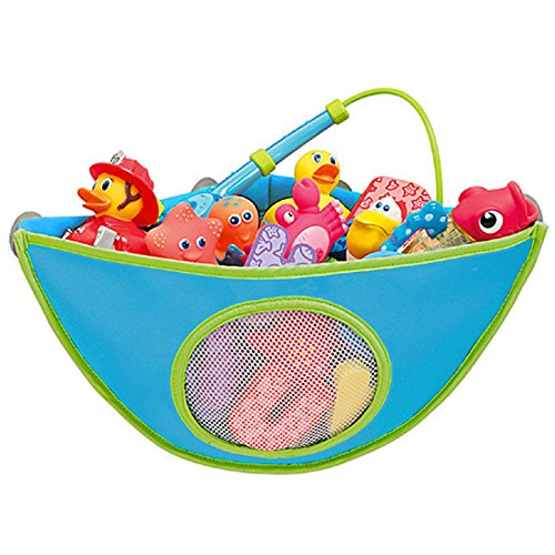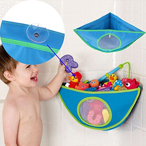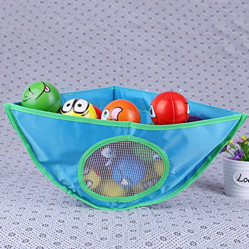 Domybest おもちゃ収納袋 お風呂収納袋 吸盤式 三角バッグ 広口 キッズ 子供 おもちゃ入れ 収納ポケット 多用途 子供部屋収納 2色 (ブルー)