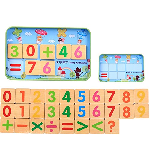 - 【構成表:100個の木製スティック、6個のプラスとマイナスの乗除算表、62個の磁気数字】幼児期にカラフルな色にたくさん触れることで、注意を惹きながら、色の認識力を自然と向上させることができます。