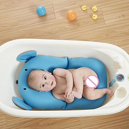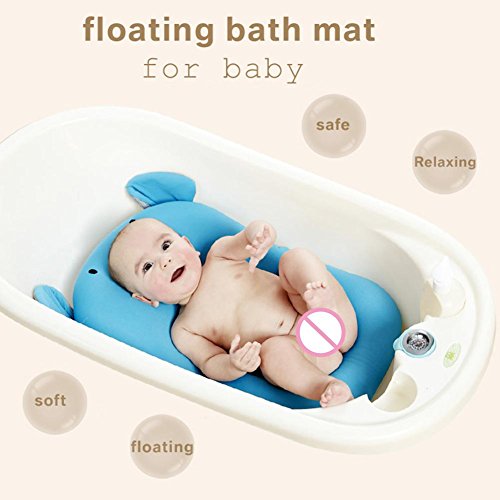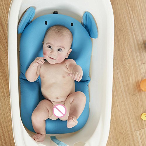 Domybest ベビーお風呂マット 赤ちゃんバスマット シャワー スポンジマット 新生児 ベビーバス用品 バスクッション 浴槽 シャワーベッド 可愛い 象 ソフト滑り止め 快適 保護 安心 ブルー