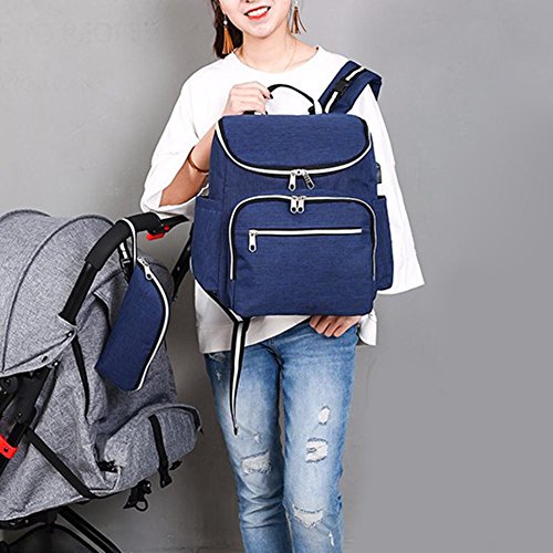 Domybest マザーズバッグ 大容量 ミイラバッグ ママバッグ リュック 防水 多機能 軽量 無地 ダークブルー ファッション シンプル ベビー用品収納 出産祝い