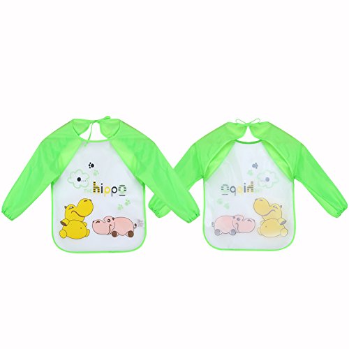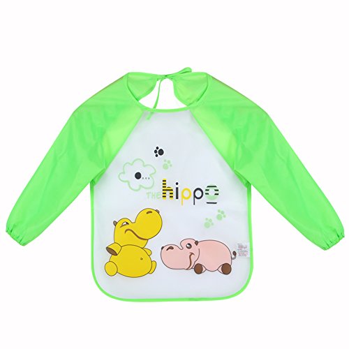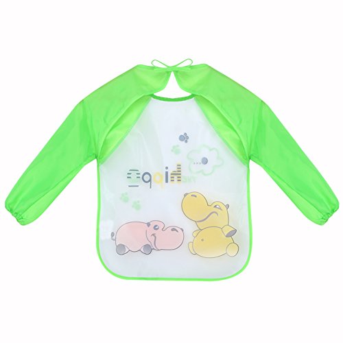 Domybest可愛いベビー食事用エプロン 防水ビブ 長袖 赤ちゃん 幼児 お食事 お食事練習 お絵描き ねんど遊び 保育園用などに最適 多種類選択可能 (薄緑)