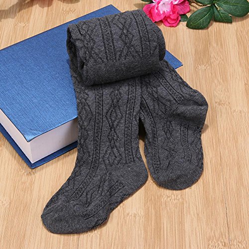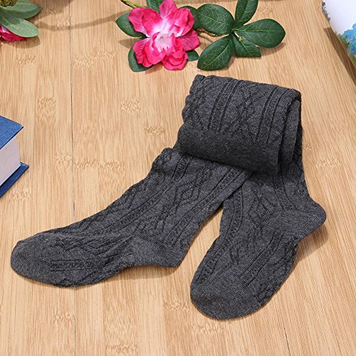 Domybestガールソックス 女の子のタイツ 秋冬 強い弾力性のソックス 無地 ツイスト織り模様 レトロストライプ 暖かく保つ 日常着用