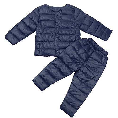 Domybest 冬 2点セット子供服 ダウン ライナー服 ズボン 長袖 男の子 女の子 0-4歳に適して ダークブルー かわいい 厚い 柔らかく快適 暖かく保つ 幼稚園 クライミング 旅行
