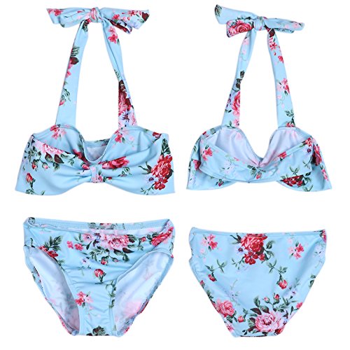 Domybestキッズ 水着 女の子 ビキニ 上下セット ベビー スイムウェア 女児 ガールズ ミズギ スイミング スクール水着 セパレート 蝶結び 花柄 2点セット 夏 ビーチ 海水浴 温泉 プール (90(2-3歳))
