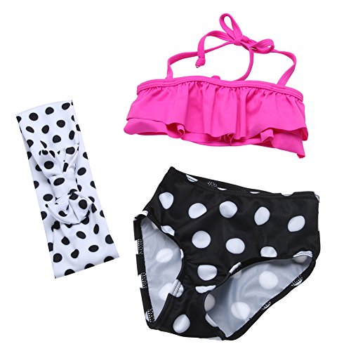 Domybestキッズ 水着 女の子 ビキニ 上下セット トップス+ショーツ+ヘアバンド 3点セット ベビー スイムウェア 女児 ガールズ ミズギ スイミング スクール水着 セパレート リボン 水玉柄 夏 ビーチ 海水浴 温泉 プール (90(2-3歳))