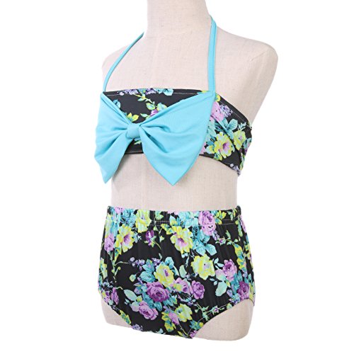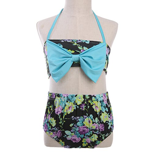 Domybestキッズ 水着 女の子 ビキニ 上下セット 2点セット ベビー スイムウェア 女児 ガールズ ミズギ スイミング スクール水着 セパレート ツーピース リボン 花柄 夏 ビーチ 海水浴 温泉 プール (110(3-4歳))