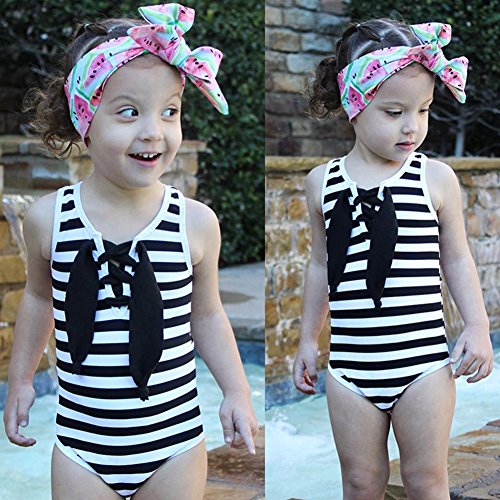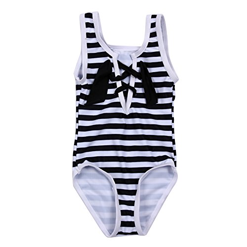 Domybest子供 水着 ワンピース 女の子 水着 みずぎ キッズ 女児 ボーダー柄 夏 ビーチ スイムウェア オールインワン スイミング プール 海水浴 (130(5-6歳))