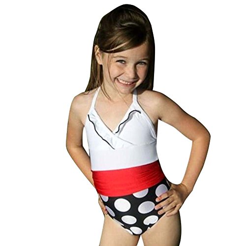 Domybest子供 水着 ワンピース 女の子 水着 みずぎ キッズ 女児 夏 水玉柄 ビーチ スイムウェア オールインワン スイミング プール 海水浴 (130(6-7歳))