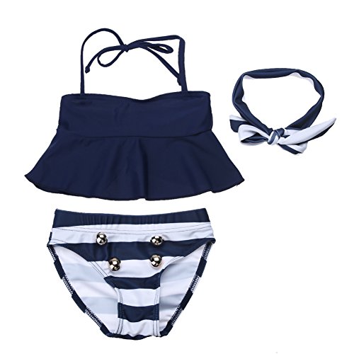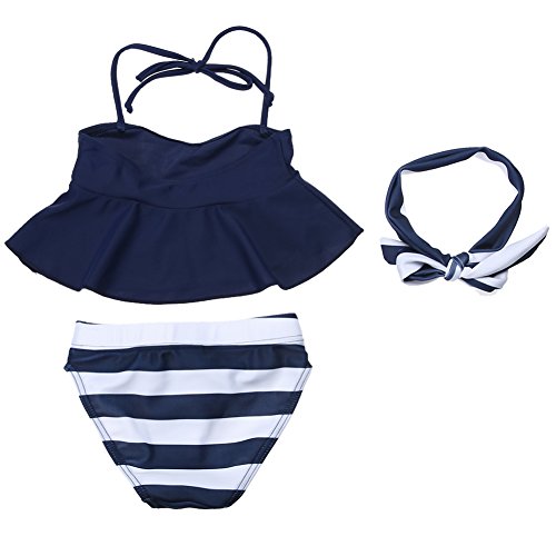 Domybestキッズ 水着 女の子セパレート 上下セット ビキニ タンキニ トップス パンツ ヘアバンド 3点セット ベビー スイムウェア 女児 ガールズ ミズギ スイミング スクール水着 セパレート 蝶結び ボーダー 夏 ビーチ 海水浴 温泉 プール (120(5-6歳))