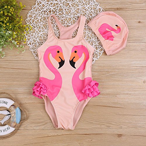 Domybest 水着 女の子 ベビービキニ ワンピース水着+スイミングキャップ 2点セット 白鳥 ビーチ 海水浴 温泉 プール 夏 可愛い