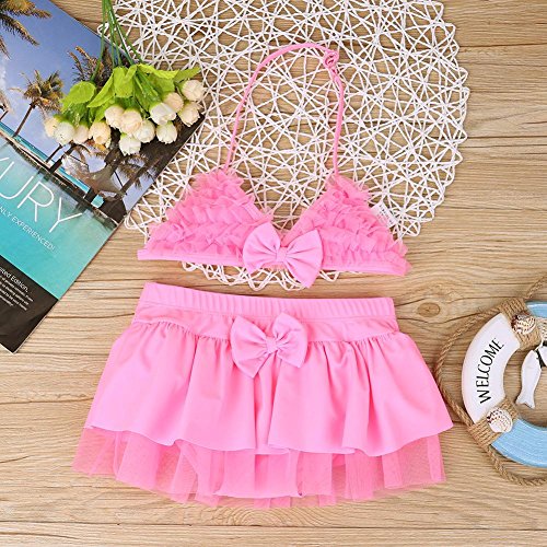 Domybest 子供水着 ベビースイミングウェア 女の子 トップス+パンツ 2点セット ビーチウェア ビキニ メッシュスカート レース リボン 可愛い 柔らかい ホリデー 海水浴 温泉 プール 水泳 写真 パーティー 春 夏