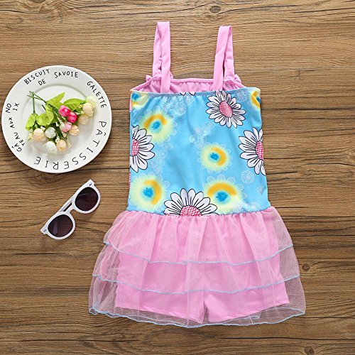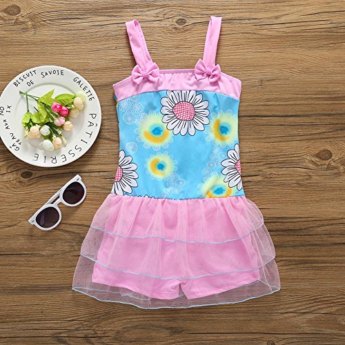Domybest 子供水着 ベビースイミングウェア 女の子 ビーチウェア ワンピース ビキニ パンツ メッシュスカート 花柄 可愛い 柔らかい ホリデー 海水浴 温泉 プール 水泳 写真 パーティー 春 夏 ピンク 3-4歳