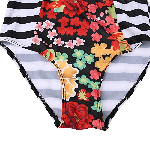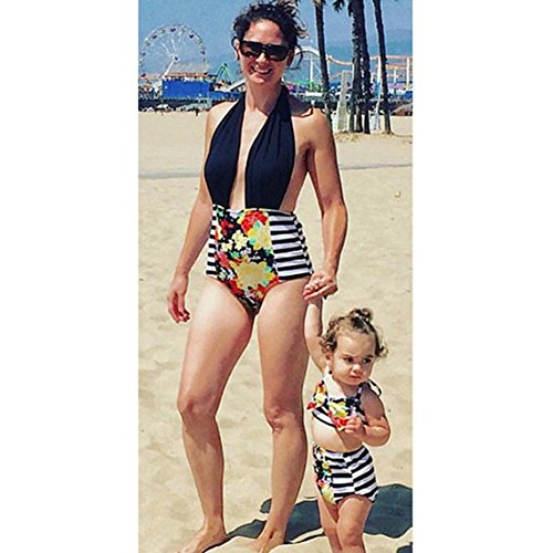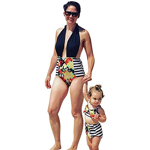 Domybest 親子水着 ママ水着 トップス+パンツ 2点セット 母親 女性 ビーチウェア ワンピース ビキニ パンツ 花柄 ストライプ 可愛い 柔らかい ホリデー 海水浴 温泉 プール 水泳 写真 パーティー 春 夏