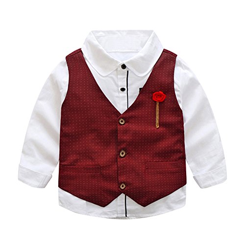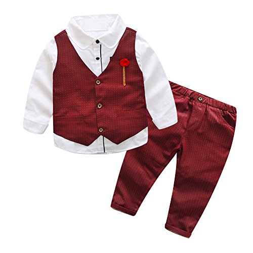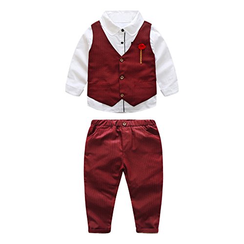Domybest子供スーツ 男の子スーツ フォーマルスーツ キッズスーツ フォーマル洋服 子供服 ボーイズ 紳士服 シャツ+ベスト+パンツ 3点セット 長袖 ジェントルメン 3色選択可能 入学式 入園式 卒業式 誕生日 発表会 演出 演奏会 結婚式 七五三 (120(120-125cm ), 赤)