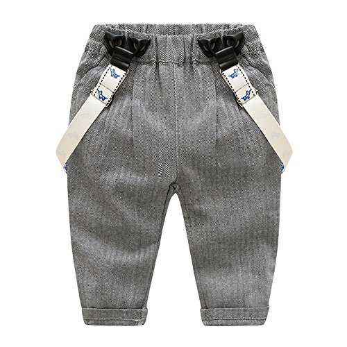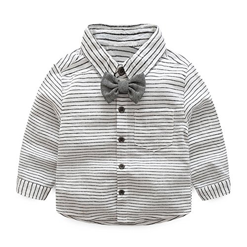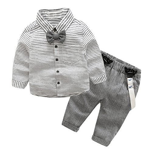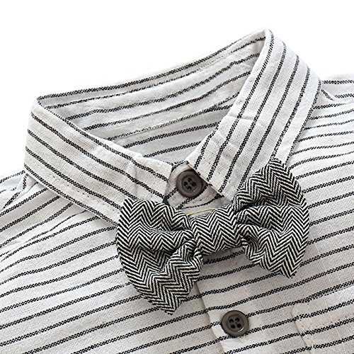 Domybest ベビー服 ロンパーススーツ フォーマル セレモニーロンパース オーバーオール ストライプ柄 男の子 紳士服 シャツ+サスペンダーパンツ上下セット 長袖 ジェントルメン蝶結び 新生児 幼児 結婚式 出産祝い 撮影 記念日 誕生日 (70(65-75cm))