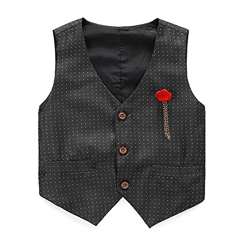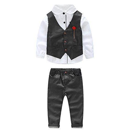 Domybest子供スーツ 男の子スーツ フォーマルスーツ キッズスーツ フォーマル洋服 子供服 ボーイズ 紳士服 シャツ+ベスト+パンツ 3点セット 長袖 ジェントルメン 3色選択可能 入学式 入園式 卒業式 誕生日 発表会 演出 演奏会 結婚式 七五三 (100(105-115cm ), 黒)