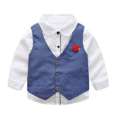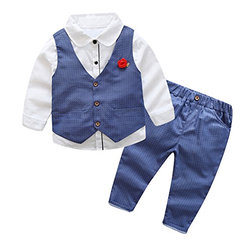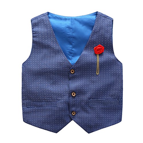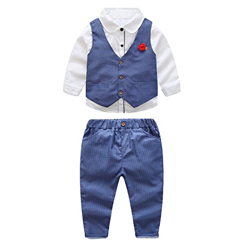 Domybest子供スーツ 男の子スーツ フォーマルスーツ キッズスーツ フォーマル洋服 子供服 ボーイズ 紳士服 シャツ+ベスト+パンツ 3点セット 長袖 ジェントルメン 3色選択可能 入学式 入園式 卒業式 誕生日 発表会 演出 演奏会 結婚式 七五三 (140(130-135cm ), 青)