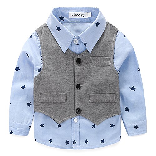 Domybest ベビー服 男の子 フォーマルスーツ 上下セット キッズ 男の子 紳士服 シャツ ベスト パンツ 3点セット 長袖 ジェントルメン 赤ちゃん 幼児 出産祝い 結婚式 撮影 記念日 誕生日 (90(身長85-95cm))