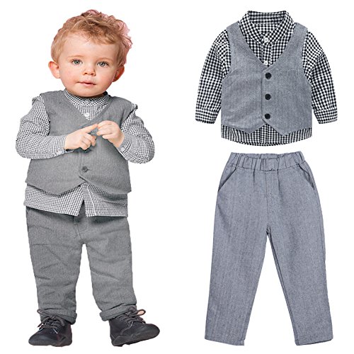 Domybest ベビー服 男の子 フォーマルスーツ 上下セット キッズ 紳士服 シャツ ベスト パンツ 3点セット 長袖 ジェントルメン 赤ちゃん 幼児 出産祝い 結婚式 撮影 記念日 誕生日 (80(6-12ヶ月))