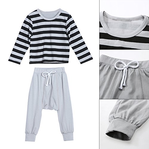 Domybest 2点 子供服 ベビー服 子供 Tシャツ キッズ スーツ パジャマ コットンシャツ ズボン 長袖 男の子 女の子 1-6歳 ストライプ模様 カジュアル かわいい 幼稚園 普段着 部屋着