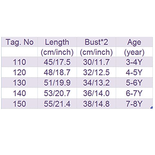- 【サイズ】110cm、3-4歳、服の長さ:45cm;120cm、4-5歳、服の長さ:48cm;130cm、5-6歳、服の長さ:51cm;140cm、6-7歳、服の長さ:54cm;150cm、7-8歳、服の長さ:55cm;
