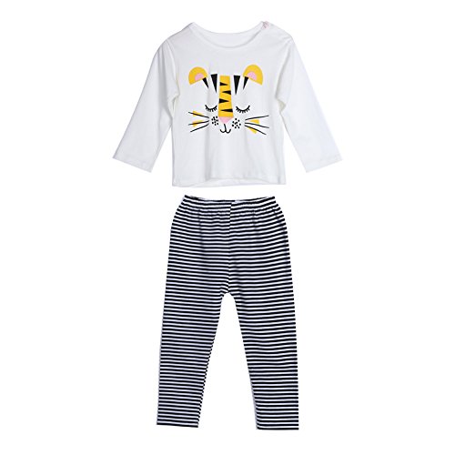 Domybest 秋冬 赤ちゃん服 キッズ パジャマ 女の子 男の子 タイガー柄 綿100% 長袖 Tシャツ上下セット トップス+ジーンズ+ヘアバンド 0.5-4歳 七三五 出産お祝い