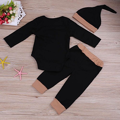 Domybest 3点セット 子供服 カバーオール ロンパース ベビー服 パジャマ 長袖 綿 女の子 0-18ヶ月 ブラック かわいい お出かけ 普段着 部屋着