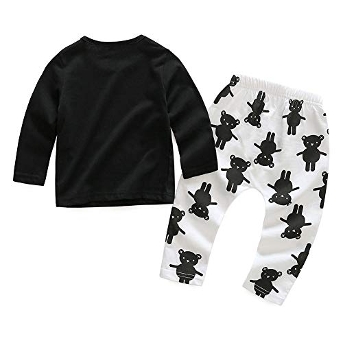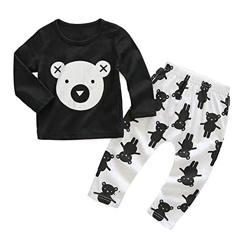 Domybest 上下セット ベビー服 長袖 Tシャツ 長ズボン パジャマ 春 秋 冬 男女共用 幼児 キッズ 2点入り トップス+ズボン 綿 可愛い ベア柄 普段着 部屋着 超柔らかい カジュアル 出産祝い プレゼント