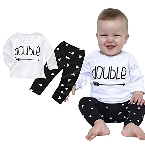 Domybest 上下セット ベビー服 長袖 Tシャツ 長ズボン パジャマ 春 秋 冬 男女共用 幼児 キッズ 2点入り トップス+ズボン 綿 可愛い 英字柄 普段着 部屋着 超柔らかい カジュアル 出産祝い プレゼント