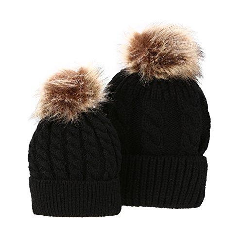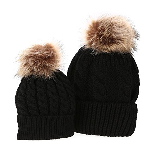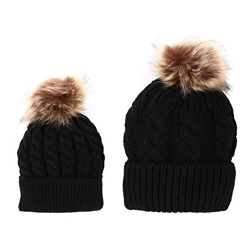 Domybest ヨーロッパとアメリカのスタイルの暖かい帽子 母親と赤ちゃんの親子帽子 1x大人の帽子と1xチャイルドハット 秋と冬の暖かい帽子 ハンドニット帽子 かわいい 写真小道具
