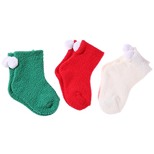 Domybest 3pcs 秋冬 ベビーソックス 子供用ソックス 赤ちゃん 新生児 クリスマス衣装 0-5歳 厚い コーラルベルベット 滑り止め 出産祝い 段着 お出かけ 防寒 通園 通学