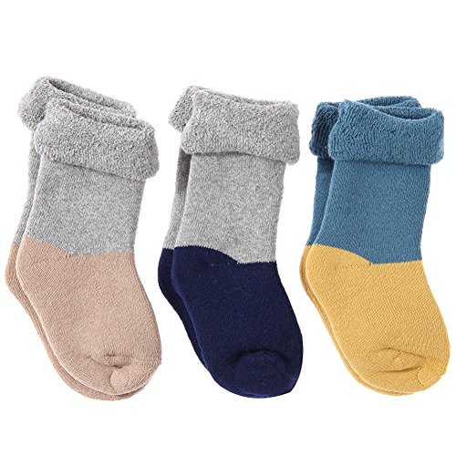 Domybest 3pcs 秋冬 ベビーソックス 子供用ソックス 下着 赤ちゃん 新生児 女の子 男の子 0-3歳 厚い 出産祝い お祝い ギフト 普段着 お出かけ 防寒 通園 通学