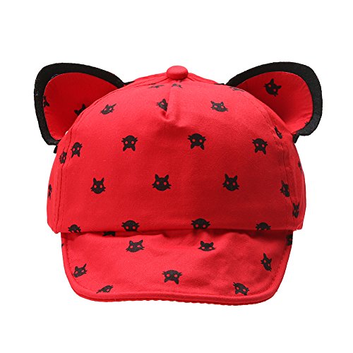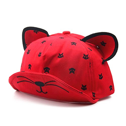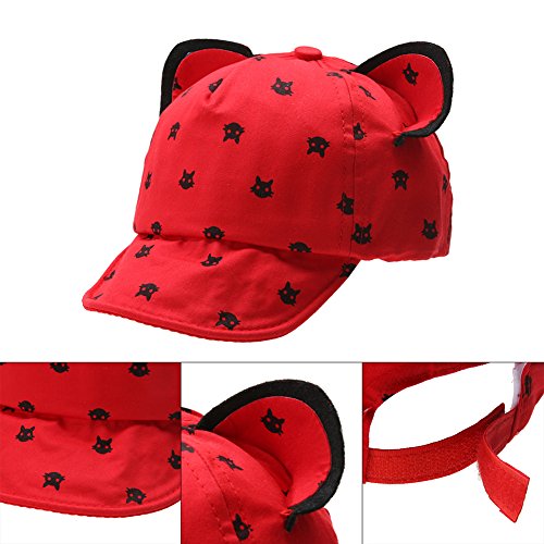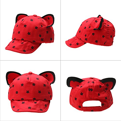 Domybest 可愛い子供帽子 キャップ ベビー 赤ちゃん ベースボールキャップ 猫耳 野球帽 ユニセックス 男女兼用 春 夏 秋 通学 通園 お出かけ UVカット 1~3歳 5色選択可能 (赤)