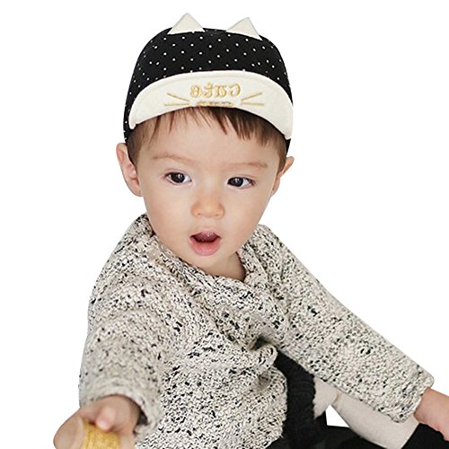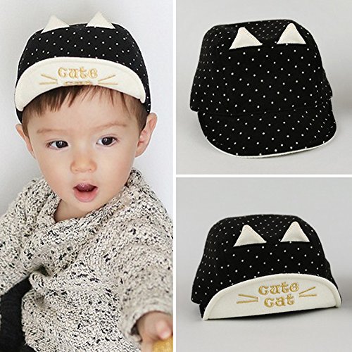 Domybest 可愛い子供帽子 キャップ ベビー 赤ちゃん ベースボールキャップ 猫耳 野球帽 ユニセックス 男女兼用 春 夏 秋 通学 通園 お出かけ UVカット 1~3歳 2色選択可能 (ブラック)