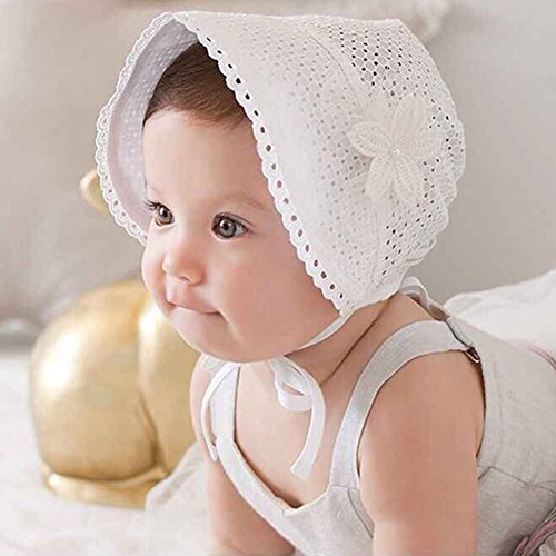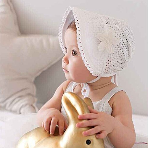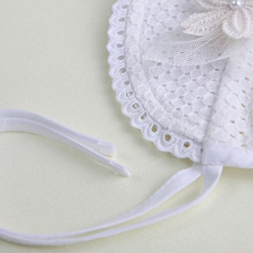 Domybest ベビー帽子 新生児 フレア ハット レース ラブリープリンセス あご紐 可愛い ユニセックス 男女兼用 春 夏 秋 紫外線 UV対策 セレモニー お宮参り 出産祝い プレゼント 2色選択可能 (ホワイト)
