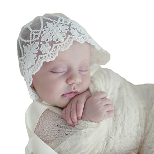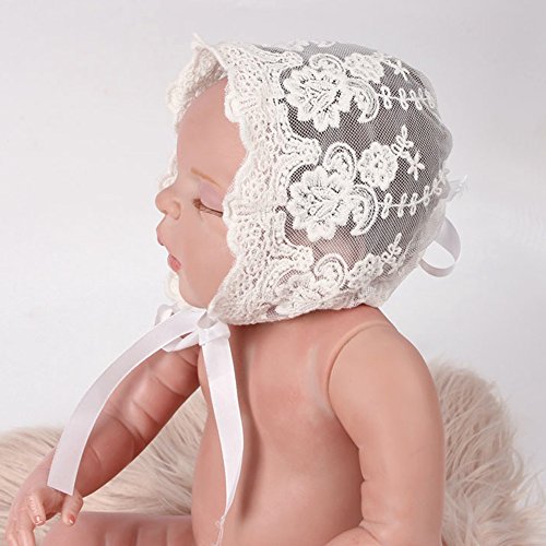 Domybest ベビー帽子 新生児 フレア ハット レース ラブリープリンセス あご紐 可愛い ユニセックス 男女兼用 春 夏 秋 紫外線 UV対策 セレモニー お宮参り 出産祝い プレゼント 2色選択可能 (レース)