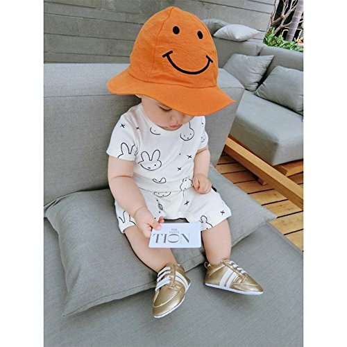 Domybest ベビー用ハット つば広 笑顔 紫外線対策 赤ちゃん キッズ 帽子 子供 ベルト付き 女の子 日焼け防止 3色 (オレンジ)