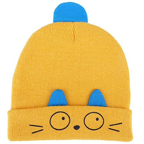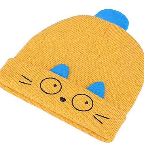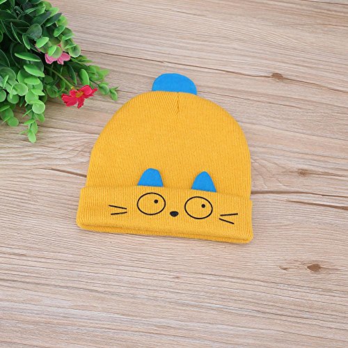 Domybest ベビーラインキャップ 大きな目の猫のパターン 1-3歳に適して コールドウォームハット 人造ハンドニット帽子 5色 写真小道具