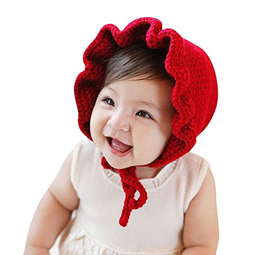 Domybest【エレガントなプリンセス】 ベビーラインキャップ 人造ハンドニット帽子 ロータスリーフ側 出産祝い 柔らかく防寒対策 写真小道具 快適 1-3歳に適して 3色