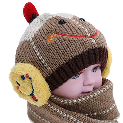 Domybest 【冬を懐に抱えて】秋冬ベビーキャップ ニット帽子 かわいい笑顔のパターン 出産祝い 百日記念 写真小道具 防寒対策 柔らかく 快適 0-3歳に適して 4色