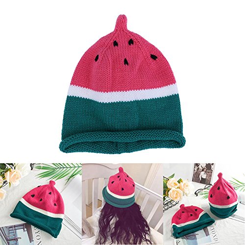 Domybest 秋冬 面白いベビーキャップ ニット帽子 かわいいスイカのモデリング キャンディーの色 誕生日 幼稚園 写真小道具 防寒対策 暖かく保つ 快適 柔らかく 2色