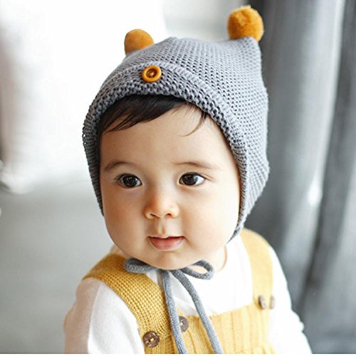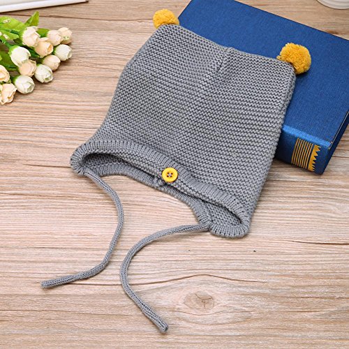 Domybest 【冬を懐に抱えて】ベビーラインキャップ ニット帽子 かわいい小さな猫の形 防寒対策 写真小道具 出産祝い キャンディーの色 柔らかく快適 1-3歳に適して 4色 (グレー)