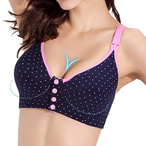 Domybest 授乳肌着 インナー服 ストレッチレース 大きいサイズ レイヤード カシュクールタイプ ネイビーブルー リムなし 前開き 出産準備 産前産後 授乳服 マタニティウェア 柔らかく快適