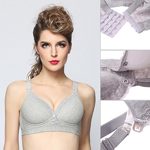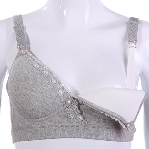 Domybest マタニティウェア 授乳服 授乳肌着 インナー服 ストレッチレース 大きいサイズ レイヤード カシュクールタイプ グレー 出産準備 産前産後 柔らかく快適