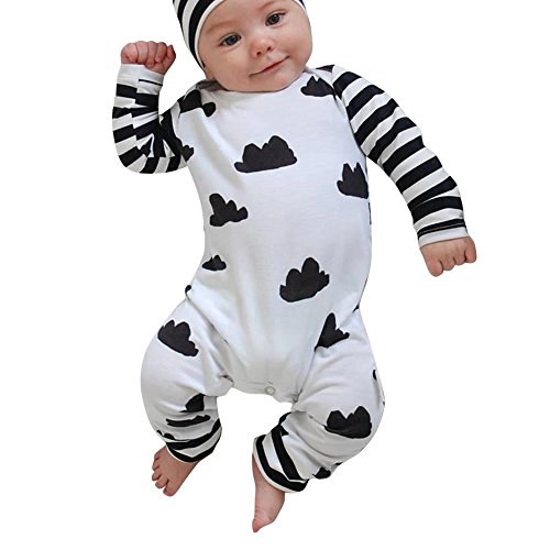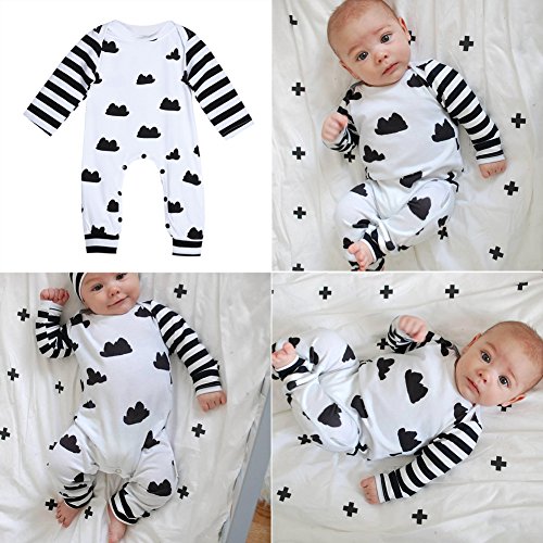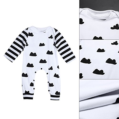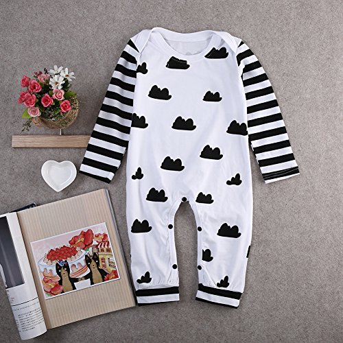 Domybest新生児 ロンパース ボディスーツ 可愛い女の子 男の子 雲プリント長袖 ジャンプスーツ ベビーロンパース ストライプ 春夏 出産祝い ベビー服 (90(9-12ヶ月))