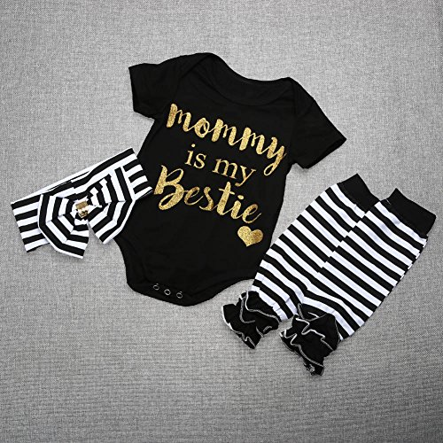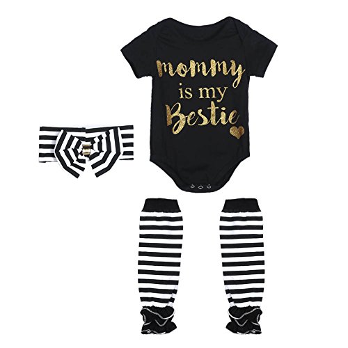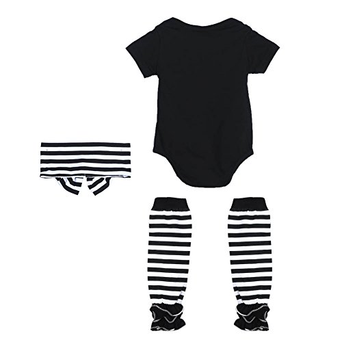 Domybestベビー服 新生児 ロンパースセット 可愛い 女の子 男の子 ボディスーツ カバーオール オーバーオール ストライプ柄 ヘッドバンド+ロンパース+膝パッド3点セット 日常着 出産祝い 誕生日 撮影(100)
