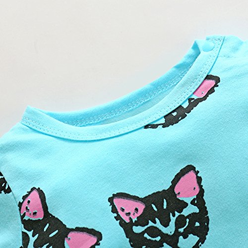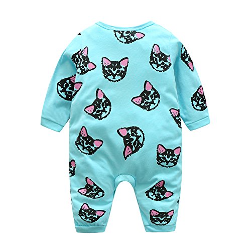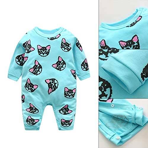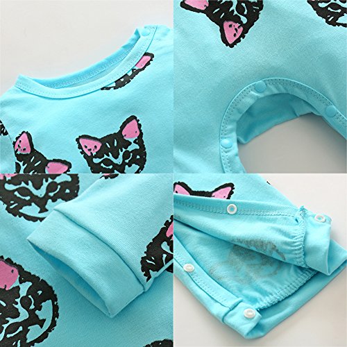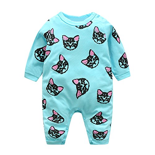 Domybest ベビー服 ロンパース ボディスーツ 可愛い 女の子 男の子 キャットプリント 長袖 ジャンプスーツ ベビーロンパース 春夏 出産祝い 新生児 ベビー服(80, ブルー)