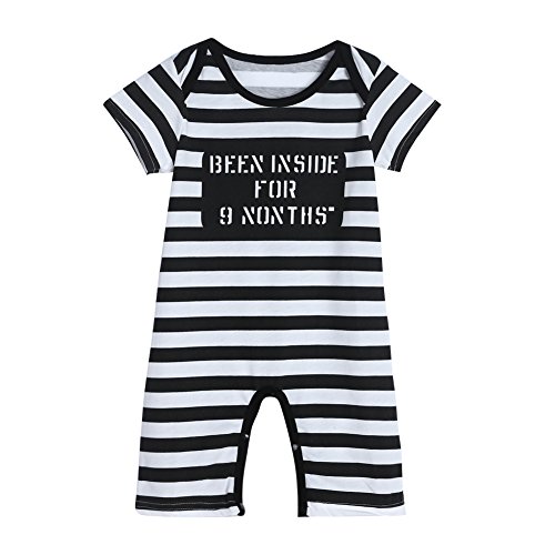 Domybestベビー服 ロンパース 新生児 ボディスーツ 男の子 女の子 ストライププリント 半袖 ジャンプスーツ ベビーロンパース 春夏 出産祝い 日常着 ベビー服 (90(身長85-95cm))