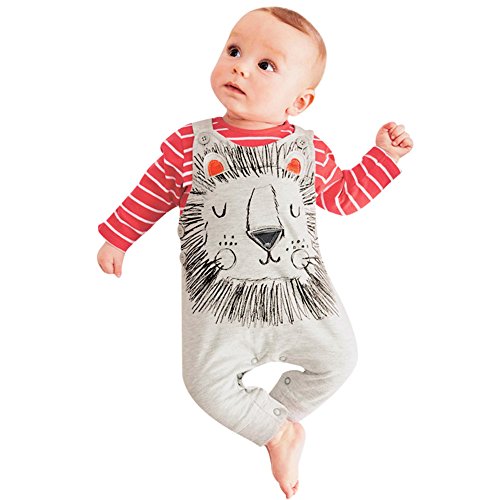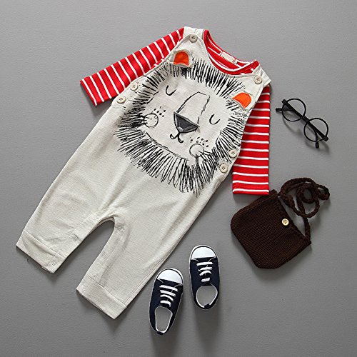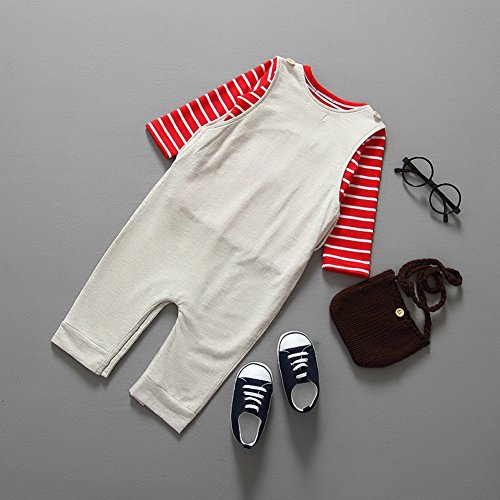 Domybestベビー服 サロペット キッズ ロンパース ストライプ柄 長袖 赤ちゃん 男の子 女の子 カバーオール オーバーオール 2点セット ジャンプスーツ ボディスーツ (70(身長 65-75cm))