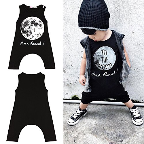 Domybestベビー服 ロンパース カバーオール ボディスーツ 男の子 クールな欧米風 英字プリント ノースリーブ 夏 ジャンプスーツ ベビーロンパース 0-24ヶ月設定 カジュアル 普段着 (100(身長95-105cm), ブラック)